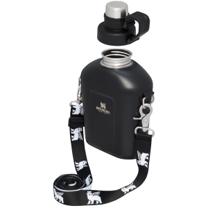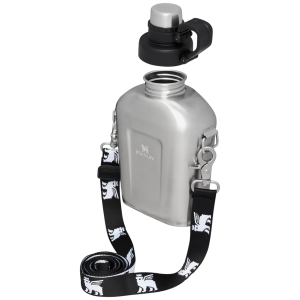 The Stanley Canteen is back and ready for your next urban hike or glamping getaway. Fill it with a quart of your favorite beverage – this non-insulated stainless steel Canteen sheds a layer of steel to let you pack more sips into a compact lightweight bottle. It holds enough water for a day on the go when staying hot or cold is not a concern. and is the perfect size to slide in your backpack or carry-on. Sling it over your shoulder – this one keeps you hands-free until you need it. thanks to the removeable carry strap featuring our iconic winged bear. The cap is attached so it will never go missing. and with iconic colors to choose from you’ll be on-trend but never thirsty.